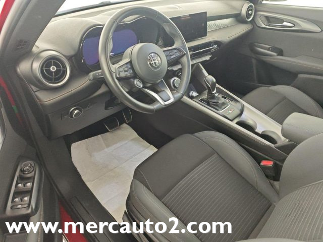 ABS, Adaptive Cruise Control, AEB con riconoscimento pedone, Airbag, Airbag laterali, Airbag Passeggero, Airbag testa, Alfa Connected Services, Ambiente nero, Ambient lighting, Autoradio digitale, Avviso occupazione sedile posteriore, Bluetooth, Bracciolo, Bracciolo centrale, Cambio TCT 7 marce, Cavo di ricarica Mode 2, Cerchi in lega, Chiusura centralizzata, Climatizzatore, Climatizzatore automatico bizona, Controllo elettronico della corsia, Controllo trazione, Coprimozzo Alfa Romeo Colorato, Cruise Control, ESP, Fari LED, Fari posteriori full led con tecnologia Infinity Mirroring ed effetto 3D, Fendinebbia, Frenata d'emergenza assistita, Immobilizzatore elettronico, Intelligent Adaptive Cruise Control, Keyless Go, Lane Support System (Lane Departure Warning e Lane Keeping Assist), Luce abbagliante/anabbagliante automatica, Luci di cortesia portiere anteriori e posteriori, Passive Entry, Plancia in Soft-Touch con doppia cucitura biscotto, Portellone elettrico, Prese USB posteriori Type A+C, Regolazione lombare elettrica a 4 vie lato guidatore, Regolazione sedili manuale a 6 vie lato guidatore e passeggero, Riconoscimento dei segnali stradali, Riconoscimento segnaletica stradale, Rilevamento sonnolenza conducente, Sedile posteriore sdoppiato, Sensore di luce, Sensore di pioggia, Sensori di parcheggio anteriori e posteriori, Sensori di parcheggio posteriori, Serigrafia Elettro-Biscione su voletto sinistro, Servosterzo, Specchietti esterni richiudibili elettricamente, Specchietti laterali elettrici, Specchietti retrovisori esterni riscaldabili, Specchietto retrovisore interno elettrocromico, Telecamera per parcheggio assistito, Telecamera posteriore con griglie dinamiche, Trilobo Alfa Romeo esagonale, Vernice Pastello Rosso Alfa, Volante sportivo con inserti in pelle, V Scudetto in tinta alluminio, Wireless Apple Car Play /Android Auto, Wireless charging pad