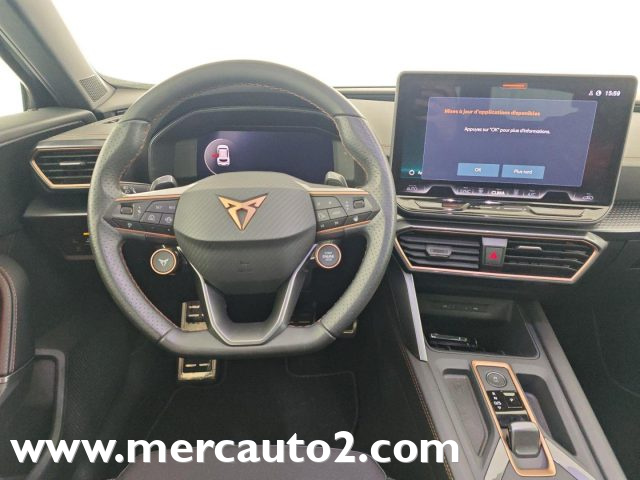 7 airbag (2 frontali, 2 laterali, 2 tendina, 1 centrale), ABS, ABS (Sistema di frenata antibloccaggio), ACC Predittivo (Adaptive Cruise Control), Adaptive Cruise Control, Alzacristalli elettrici anteriori, Alzacristalli elettrici posteriori, Attrezzi di bordo, Autoradio, Autoradio digitale, Avvisatore acustico mancato allacciamento cintura di sicurezza, Battitacco anteriori illuminati, Bluetooth, Braccialetto CUPRA in fibra di carbonio, Bracciolo, Bracciolo anteriore e posteriore, Cambio automatico DSG a 7 rapporti, Cerchi in lega, Chiusura centralizzata, Cielo abitacolo nero, Cintura di sicurezza anteriori automatiche a tre punti, Cinture posteriori laterali automatiche a 3 punti, Climatizzatore, Climatronic tri-zona, Colore interni in tessuto e similpelle SHARP Nero, Comando vocale, Concezione variabile del fondo vano di carico, Connectivity Box (Sistema di ricarica wireless per smartphone), Controllo elettronico della corsia, Controllo trazione, Cover chiave in fibra di carbonio, Cruise Control, Cupra connect, DAB (Digital Audio Broadcasting), Dashboard con design parametrico 3D e cuciture a contrasto in colore copper, Disattivazione airbag passeggero, Dispositivo Stop-Start con dispositivo di recupero, Doppio fondo nel vano bagagli, Drive Profile, ESP, Fari Full LED anteriori con firma luminosa triangolare, Fari LED, Fendinebbia, Frenata d'emergenza assistita, Freno di stazionamento elettrico, Front assist con sistema di frenata di emergenza e rilevamento pedoni e ciclisti, Full Link Wireless con Apple CarPlay e Android Auto, Funzione automatica coming & leaving home, Immobilizzatore elettronico, Indicatori di direzione posteriori dinamici, Inserti decorativi in Tech Copper e Dark Aluminium, Keyless Go (sistema di avviamento senza chiave), Kit di riparazione pneumatici, Lane Assist (sistema di mantenimento della corsia), Light assist (dispositivo di assistenza abbaglianti), Mancorrenti al tetto e cornici finestrini nero lucido, Mancorrenti neri, Modanature nere, Paraurti sportivi, Pedaliera con inserti metallici, Predisposizione per dispositivo di blocco basato sul tasso alcolico, Presa elettrica da 230 V nel vano bagagli, Regolazione automatica della distanza, Regolazione lombare e in altezza sedili anteriori, Regolazione manuale in altezza dei sedili anteriori, Retronebbia, Riconoscimento dei segnali stradali, Rivestimento del vano bagagli con vani portaoggetti, Rivestimento porte e pannelli laterali, Sedile posteriore sdoppiato, Sedili anteriori sportivi in tessuto e similpelle, Sedili posteriori abbattibili, Sensore di luce, Sensore di pioggia, Sensore luci, Sensore pioggia, Sensori di parcheggio anteriori e posteriori, Sensori di parcheggio posteriori, Sensori luci e pioggia, Serbatoio a carboni attivi (EVAP), Servosterzo, Sistema ancoraggio ISOFIX i-Size + 2 Top Tether, Sistema di controllo della pressione pneumatici, Sistema di propulsione ibrido Mild Hybrid, Sistema di riconoscimento della stanchezza, Sistema per la chiamata di emergenza e-Call, Specchietti laterali elettrici, Specchietto retrovisivo interno di sicurezza schermabile automaticamente, Tasche fermacarico sugli schienali, Tergilavalunotto a funzionamento intermittente, Terminali di scarico nascosti, Traffic Sign Recognition (riconoscimento dei segnali stradali), Trazione anteriore, Vernice Fiord Blue pastello, Vetri posteriori oscurati, Volante riscaldato con leve del cambio integrate, Welcome ceremony (cerimonia di apertura), XDS (Sistema differenziale elettronico)